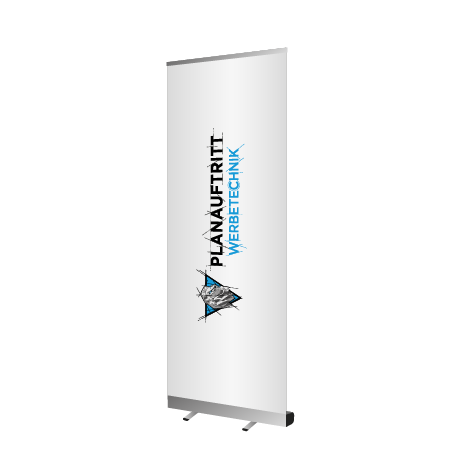 Mit dem Roll-Up Banner von Planauftritt Werbetechnik in Braunschweig, Hannover, Celle, Soltau und Hamburg erhalten Sie ein Banner aus der Basic-Reihe. Dieser ist Silber eloxiert und kommt mit zwei ausklappbaren Füßen sowie einer Klemmschiene daher. Auch für Messen, Events, Ausstellungen, Werbeaktionen und Ähnliches eignet der Roll-Up Banner sich ideal, denn er kann einfach und bequem in der mitgelieferten Transporttasche transportiert werden.