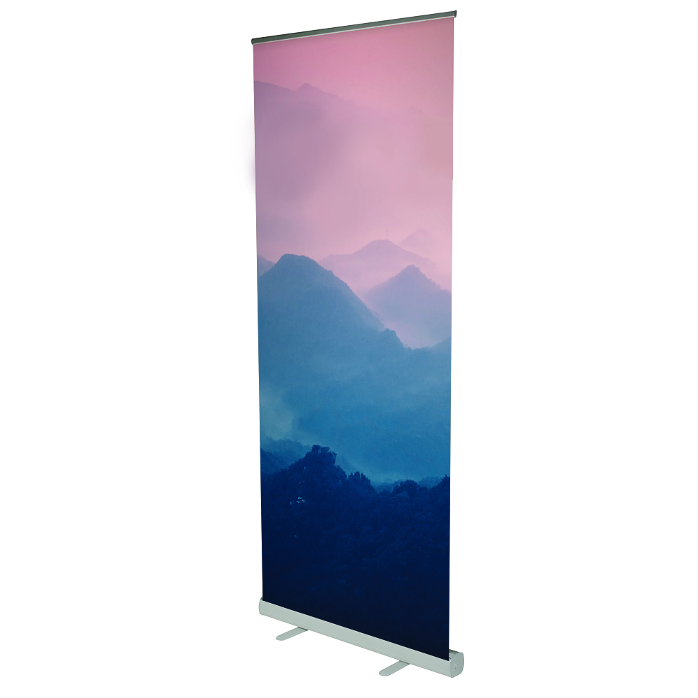 Mit dem Roll-Up Banner Budget von Planauftritt Werbetechnik in Braunschweig, Hannover, Celle, Soltau und Hamburg erhalten Sie ein Banner aus der Basic-Reihe. Dieser ist Silber eloxiert und kommt mit zwei ausklappbaren Füßen sowie einer Klemmschiene daher. Auch für Messen, Events, Ausstellungen, Werbeaktionen und Ähnliches eignet der Roll-Up Banner sich ideal, denn er kann einfach und bequem in der mitgelieferten Transporttasche transportiert werden.