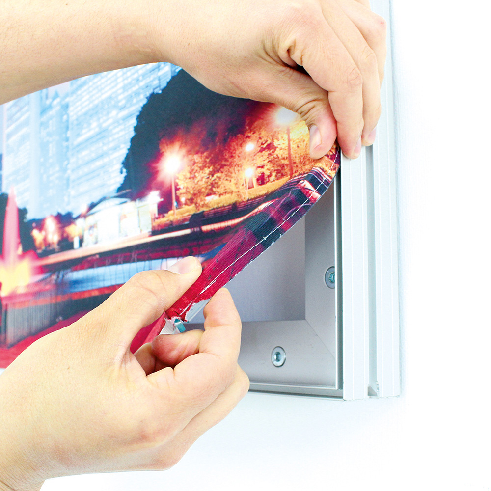 Textilspannrahmen Stele freistehend von Planauftritt Werbetechnik in Braunschweig, Hannover, Celle, Soltau und Hamburg, die sich ideal zur Präsentation im Point-of-Sale, auf Messen oder Events eignen.
