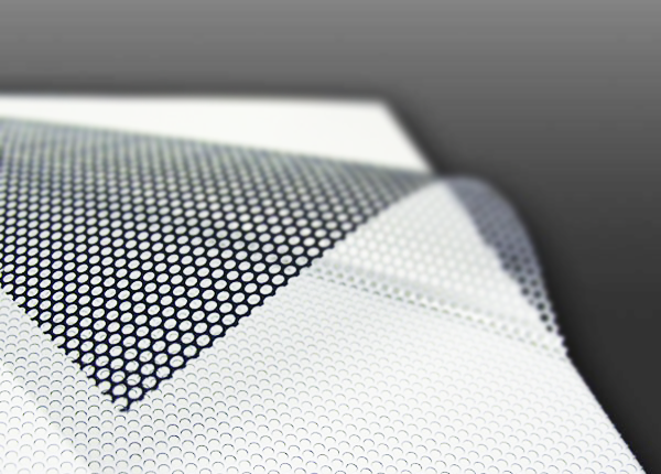 Die Größe der Folie kann frei gewählt werden, sowohl Höhe als auch Breite sind variabel, das Mindestformat ist 5 cm x 5 cm. Die Folie wird entweder auf Format geschnitten oder auf Kontur, wenn die Form nicht rechteckig sein soll. Die Lochfolie kann sowohl mit einem matten als auch einem glänzenden Laminat ausgewählt werden. Die Stückzahl kann frei gewählt werden.