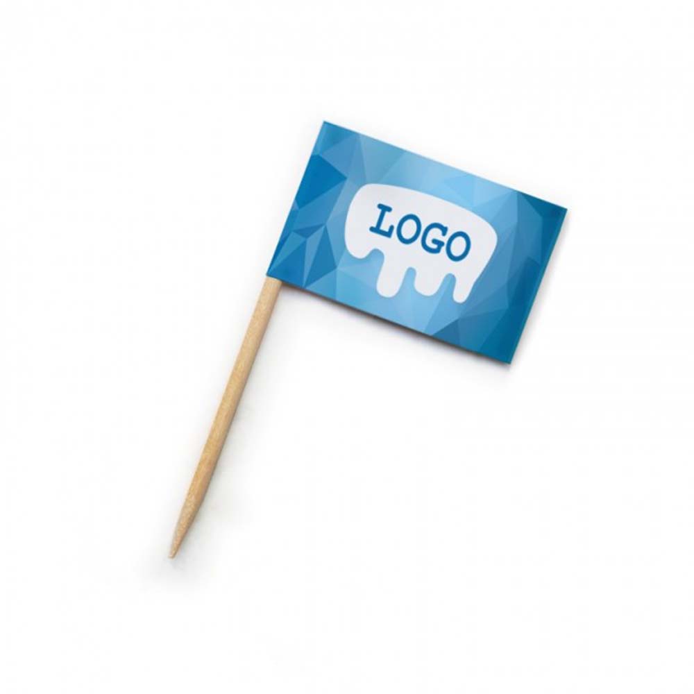 Zahnstocher mit Fähnchen | ca. 7 cm | beidseitig bedruckt von Planauftritt Werbetechnik aus Braunschweig, Hannover, Celle, Soltau und Hamburg mit Ihrer Werbung oder Ihrem Logo bedruckt.