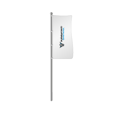 Die Fahne kann mit einem Fahnenstoff mit 110 g/m² oder einem 110 g/m² Fahnenstoff mit ovaler Lochstruktur zur reduzierung der Windlast 4/0-farbig einseitig bedruckt werden. Die Fahne wird im Format B 80 cm x H 200 cm angefertig und verfügt über Karabiner im Abstand von jeweils 50 cm, mit diesen kann sie bequem auf Fahnenmasten gehisst werden. Je nach Wunsch können die Karabiner sich links oder rechts an der Fahne befinden. Die Hissflagge wird ohne Fahnenmast geliefert.