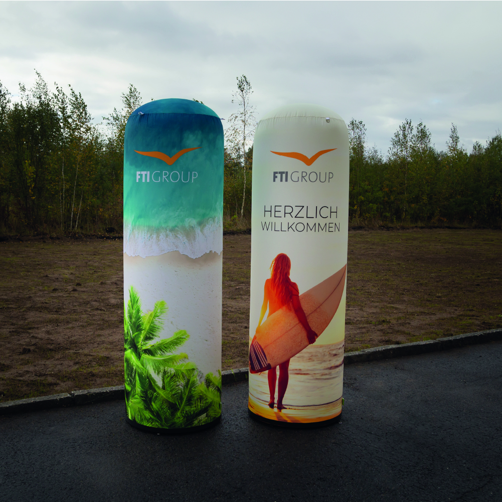 Aufblasbare Werbesäule pneumatisch (D 67 cm x H 300 cm) bedruckt in Braunschweig, Hannover, Celle, Soltau und Hamburg bei Planauftritt Werbetechnik