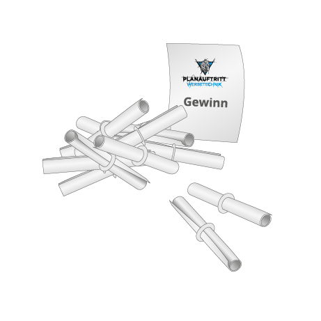 Schon fast 100 Jahre alt, aber noch immer Bestseller - die Röllchenlose von Planauftritt Werbetechnik in Braunschweig, Hannover, Celle, Soltau und Hamburg. Das liegt sicher an ihrer Einfachheit, am Rascheln in der Losbox und an der Spannung beim Öffnen der Lose.