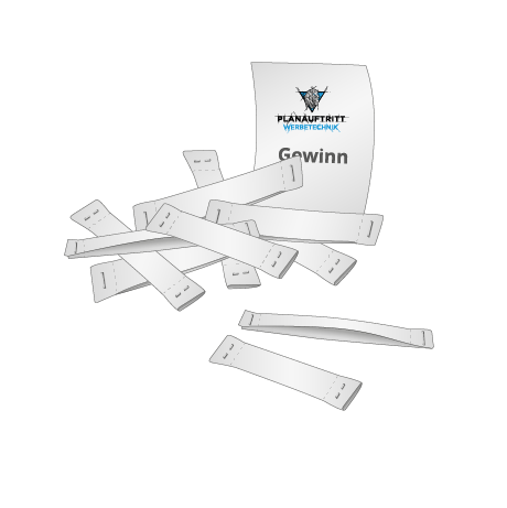 Sicherheitslose von Planauftritt Werbetechnik aus Braunschweig, Hannover, Celle, Soltau und Hamburg sind ein weiterer Losklassiker in unserem Angebot. Das Attribut "sicher" erhalten Sie durch den seitlichen Abriss, der es unmöglich macht, das Los nach dem Öffnen wieder zu verschließen.