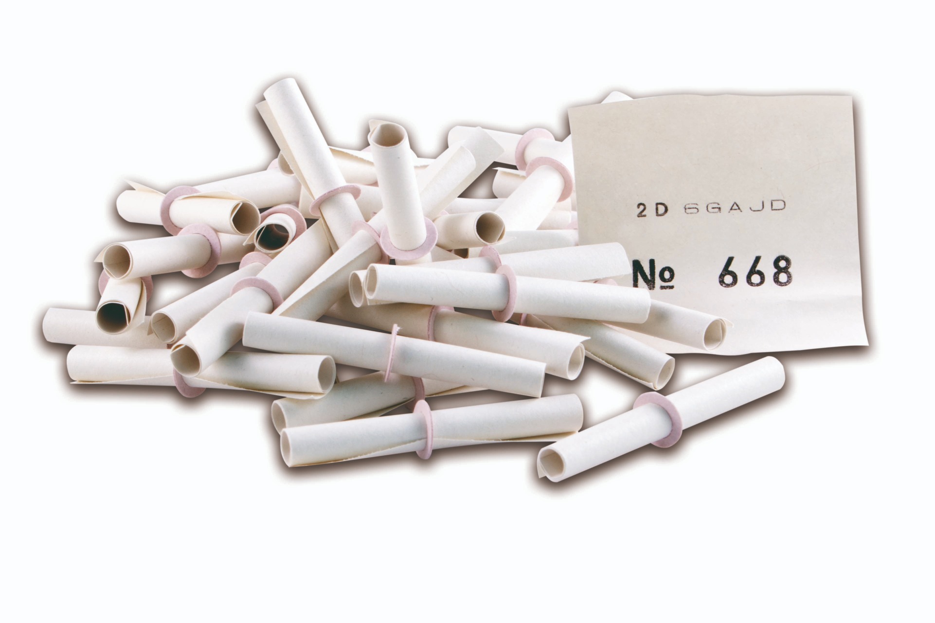 Schon fast 100 Jahre alt, aber noch immer Bestseller - die Röllchenlose von Planauftritt Werbetechnik in Braunschweig, Hannover, Celle, Soltau und Hamburg. Das liegt sicher an ihrer Einfachheit, am Rascheln in der Losbox und an der Spannung beim Öffnen der Lose.
